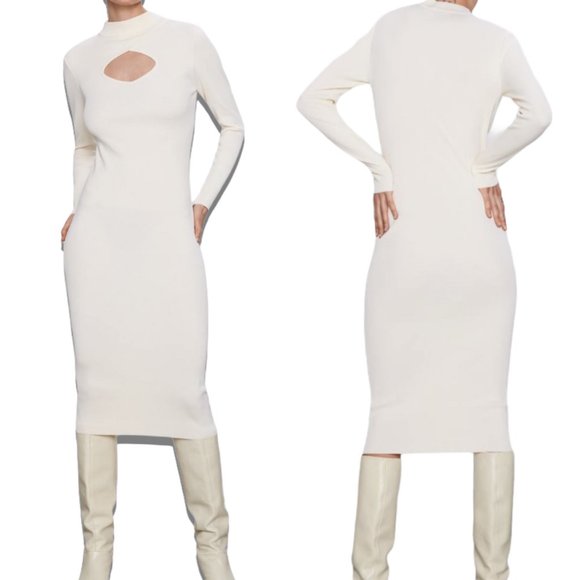 Zara Dresses Zara Cutout Long Sleeve Knit Dress Cream Large Poshmark
