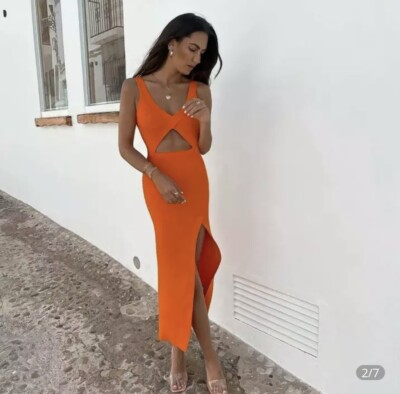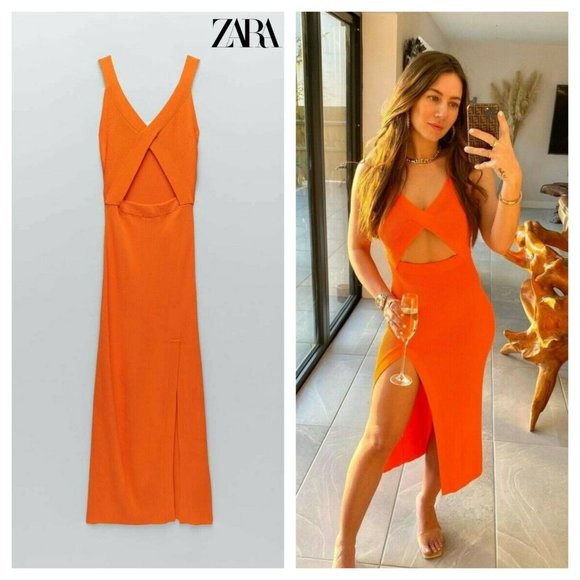 Zara Limited Orange Knitted Cut Out Midi Dress Sold Out Similar Dress Ebay
